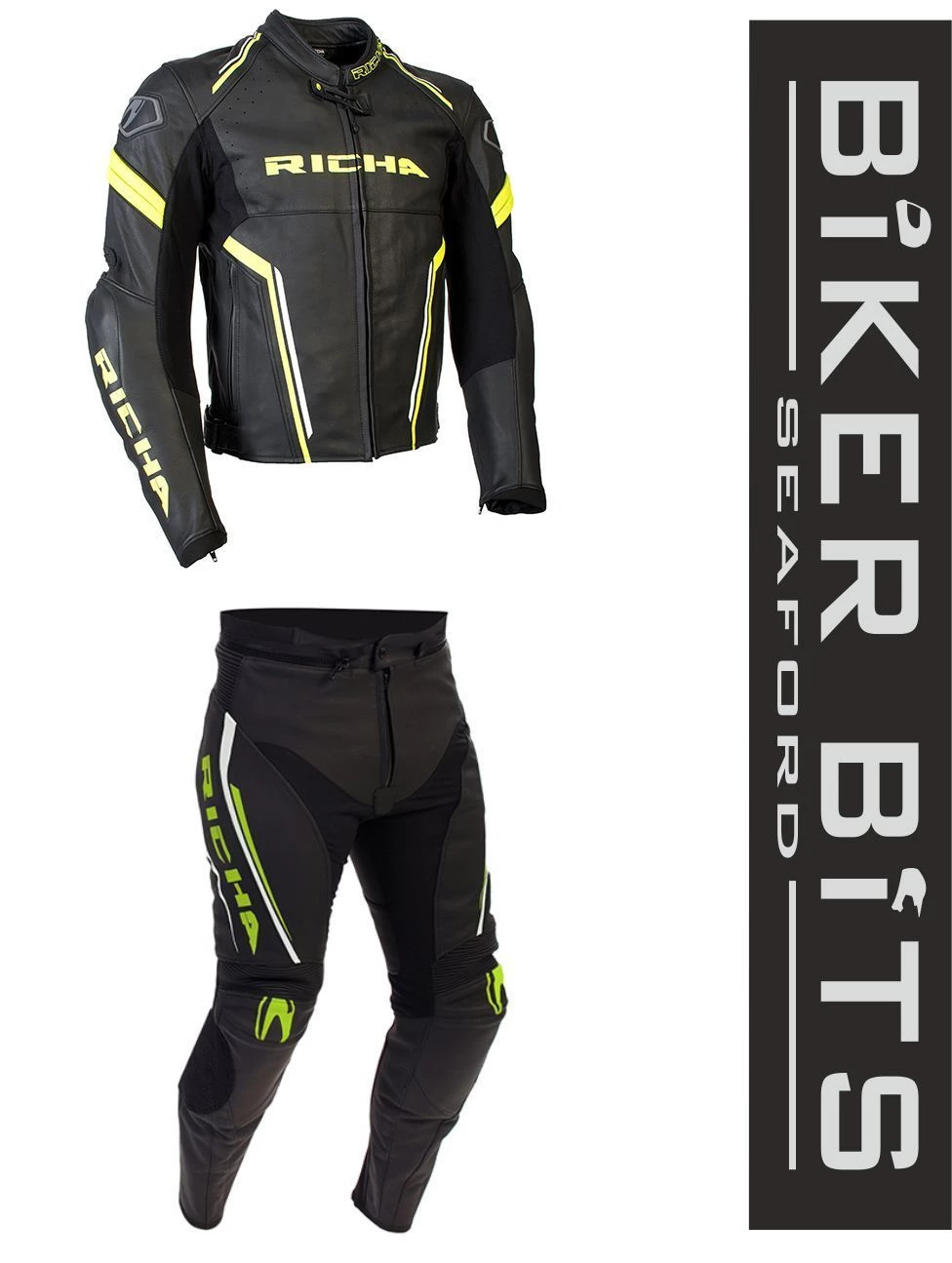 Richa Clothing RICHA MONZA Black/Grey Motorcycle Sports CE Leather Jacket/Trousers 2PC