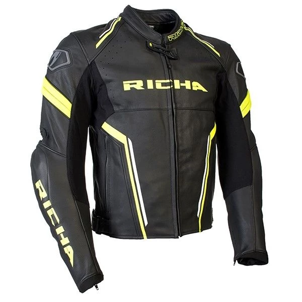 Richa Clothing RICHA LOCKHEED Casual/Retro/Cruiser Leather Black Motorcycle Jacket D30 Armour