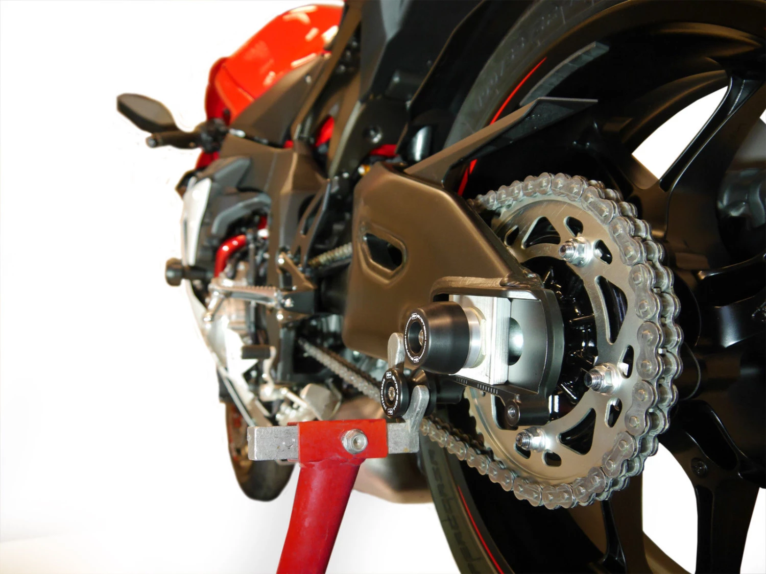 Made in England from high performance engineering materials in order to protect your expensive rear swing arm and brake calipers in the event of a spill.